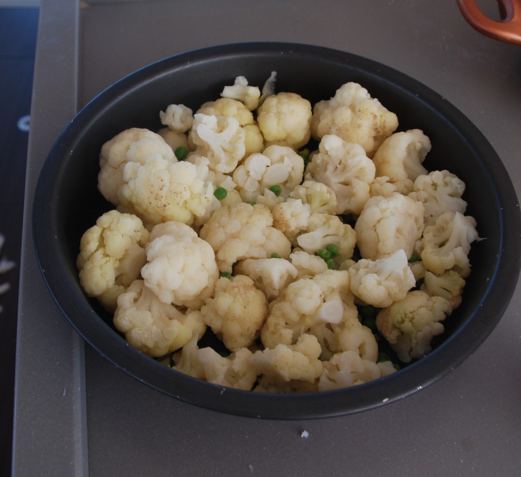 Es un plato realmente sencillo y si los ingredientes son locales y de temporada el sabor será todavía más delicioso. En nuestro caso la coliflor era fresca pero los guisantes congelados, de todos modos un plato vegetariano delicado y sabroso, como Rebeca, la cocinera en este caso.