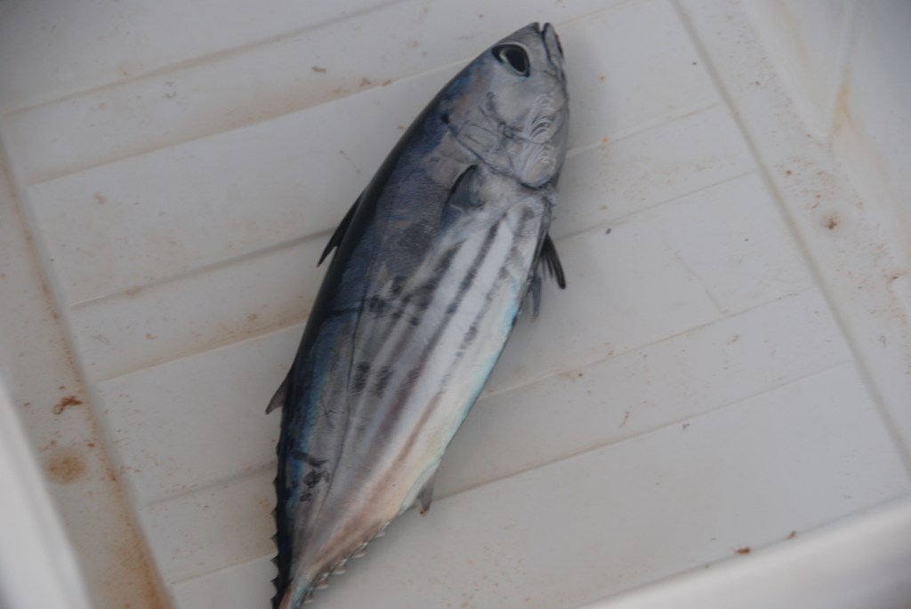 Pescamos por la mañana y eso nos permitió disfrutar de nuestra primera comida con pescado fresco en alguna parte del Atlántico, deciros que no era enorme pero aún así llegó para
