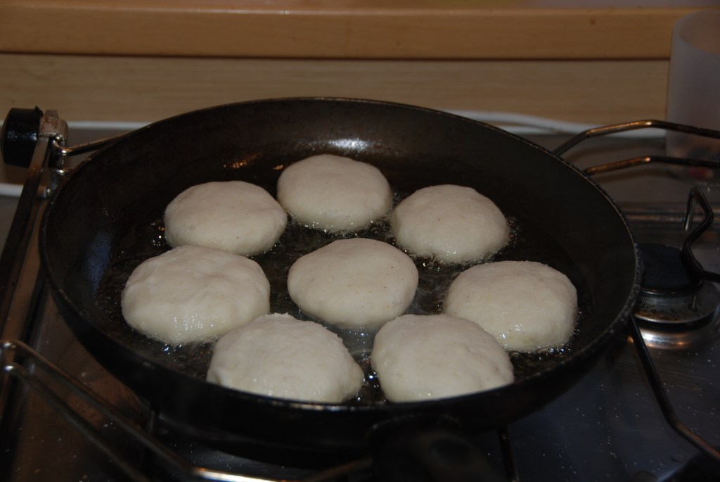 Cuando la masa esté lista, enharinamos la superficie dónde vayamos a trabajar, también el rodillo para que no se pegue. Con una taza o un círculo de emplatado de cocina cortamos la masa en círculos grandes, ponemos los trozos de queso, o queso con jamóm , doblamos en forma de media circunferencia y con la ayuda de un tenedor cerramos los bordes, es importante que queden bien selladas porque si no se nos abrirán al freírlas y saldrá todo el queso. Freírlas en abundante aceite de girasol. Dejar templar y comer calientes, así el queso estará en su punto, fundido pero que no queme.