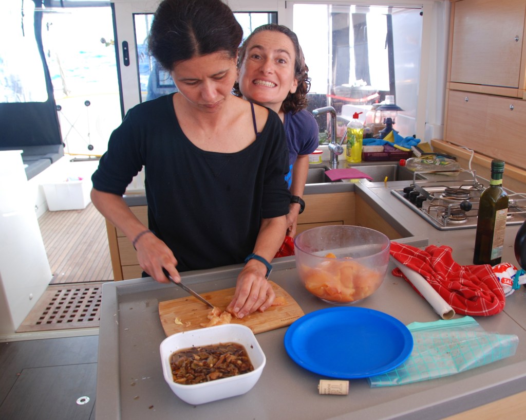 Silvia una auténtica chef y Roberta de pinche de cocina.