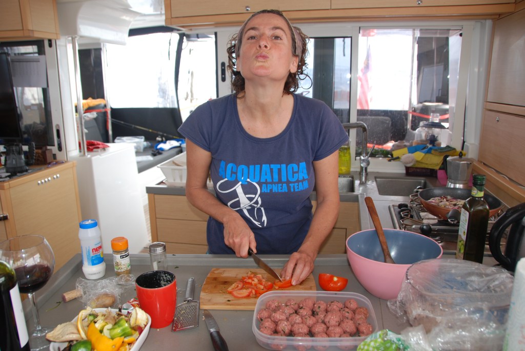Al principio cuando Andreas me decía que nos teníamos que bañar atados a un cabo me resultaba curioso, pero una vez que me tocó hacerlo entendí por qué, a 2/3 nudos con las olas, la corriente y la inmensidad del océano si no te atas al barco … Adiós!!!! Así que orgullosa de haberlo hecho , no sólo esta vez si no también unas millas más adelante.