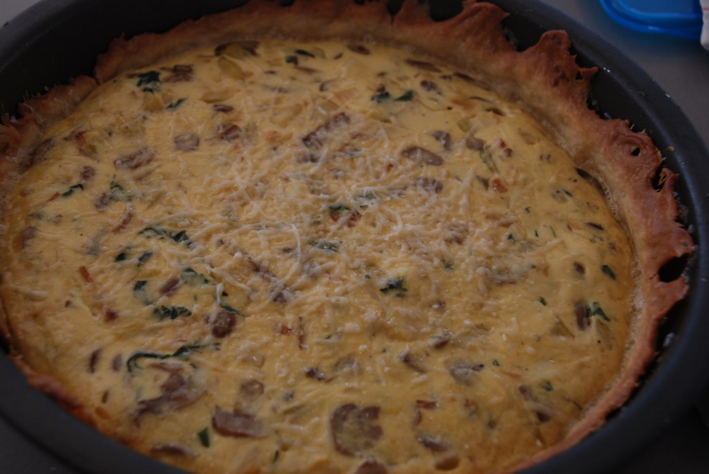 Quiche de calabacín y champiñones . Mediodía Noche de hamburguesas, veganas y de ternera