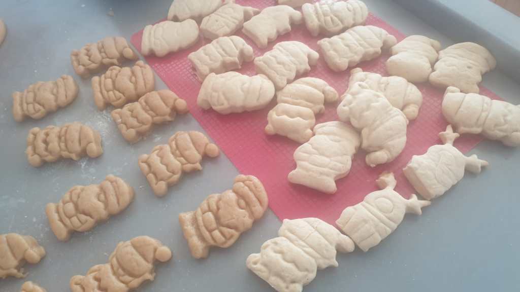 Rebeca preparó las galletas de la siguiente manera, primero batir la mantequilla, para que quede tipo pomada, añadirle el azúcar , remover, luego le añadió el huevo, barir de nuevo, a continuación incorporar la sal , la canela, la vainilla ( puede ser esencia) y al final añadir la harina. Dejar enfríar una media hora , moldear y hornear.