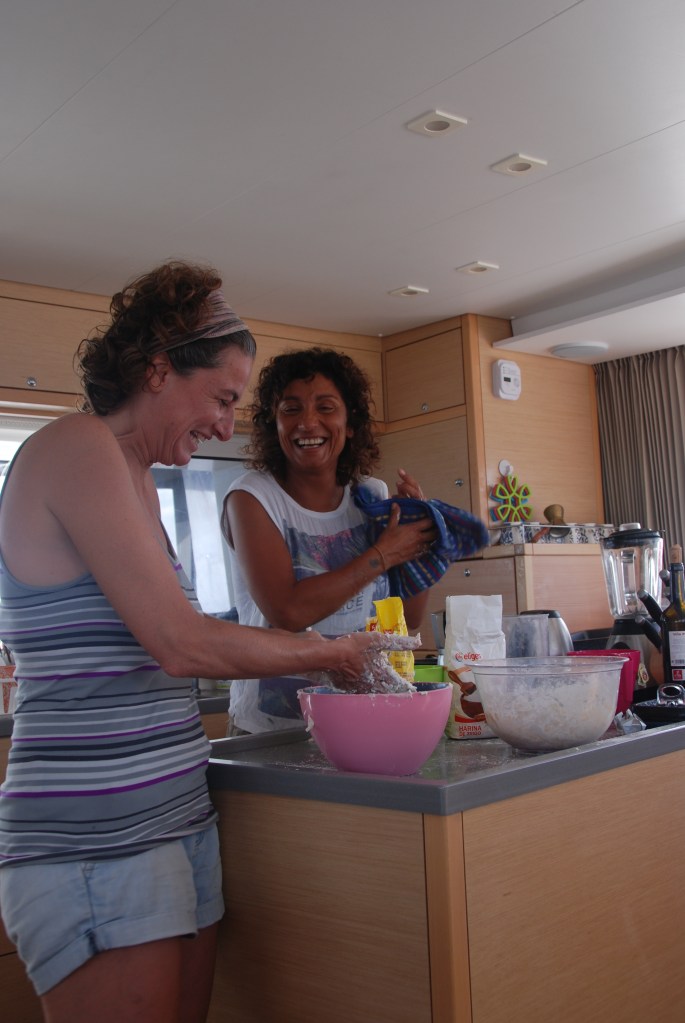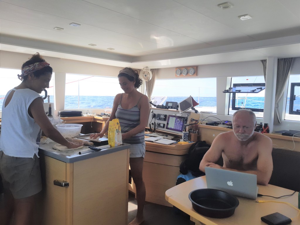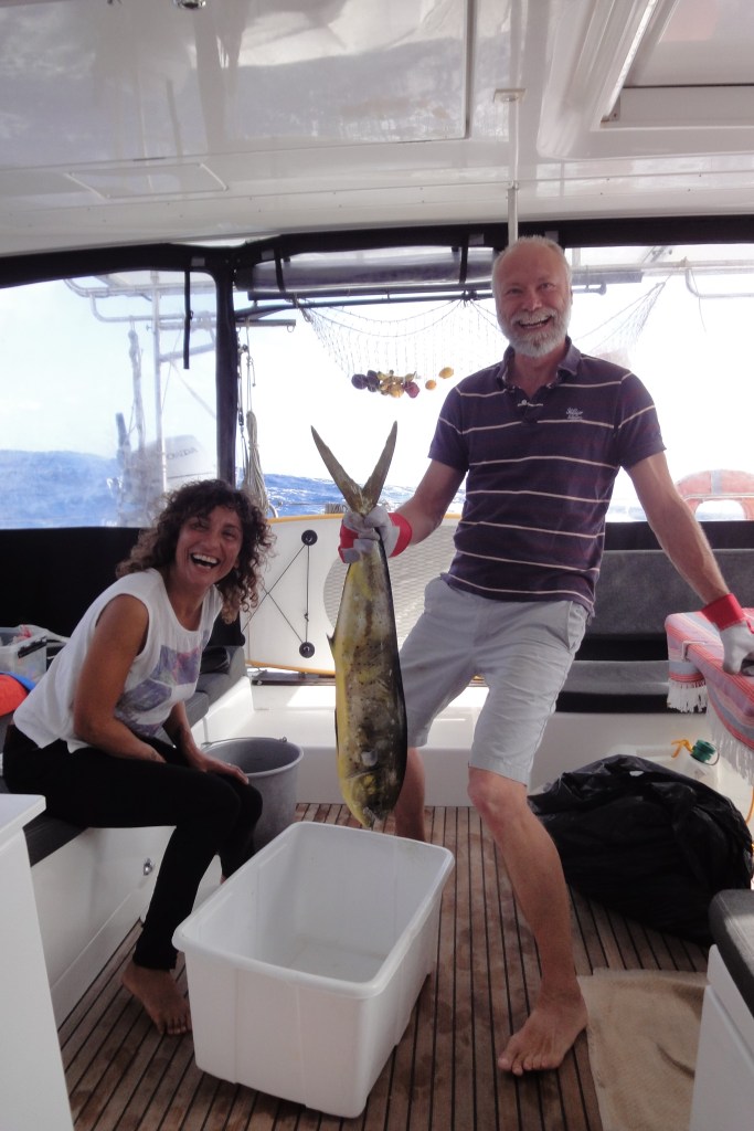 Así que lo primero fué un buen desayuno en compañía, para a continuación pescar nuestro 6º y maravilloso pez ,el 4º mahi mahi de la travesía, con el que prepararía dos empanadas de pescado, siendo yo gallega no podía faltar como broche final una empanada!! en este caso dos, una con gluten y otra sin. Este fué el más grande de todos y con él además de las empanadas prepararía un especial plato para la cena de fin de año , ya en Barbados, del que os daré cuenta en el último capítulo de esta travesía.