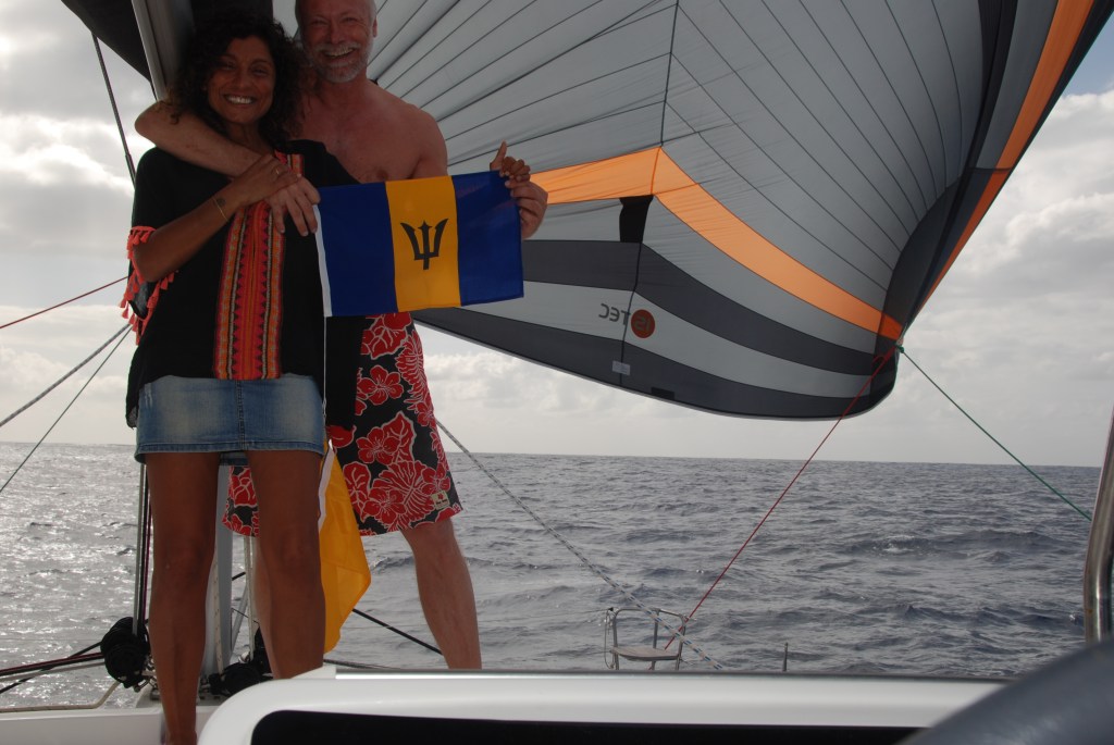 Después de la comida estábamos ansiosos por la llegada, el Capitán se dispuso a colocar la bandera de Barbados y otra amarilla, ya que hasta que no pises tierra y presentes los