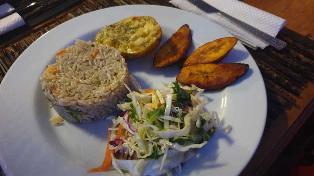 Así que el primer día nos comimos unas gambas a la plancha con arroz, ensalada y verduras . aquí lo ponen todo así con arroz , ensalada , verduras , a veces patata cocida con ajo y mantequilla , ésta última sobre todo acompañando a la langosta.