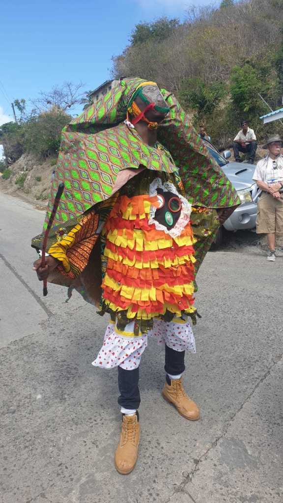 Al día siguiente nos fuimos al carnaval en Hillsborouhg, la capital, llegamos a eso de las 10 de la mañana y ya estaban todos de rum punch hasta arriba, fué un poco alucinante, resulta que el primer desfile es a las 6 de la mañana con el alba, y claro se ve que ya empezaron a beber a esa hora, si juntamos esto con la música típica a un volumen por encima de lo permitido o soportable además de la estética o temática del carnaval, que no es otra que esta , aqui os dejo foto, pues no me gustó mucho por muy famoso que sea por estos lares, la verdad.