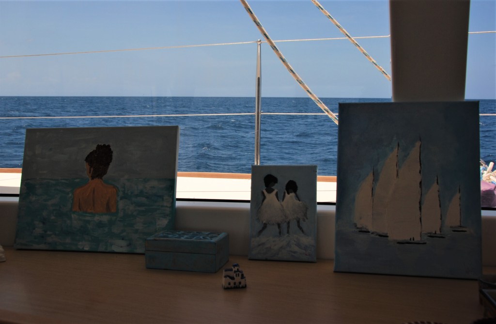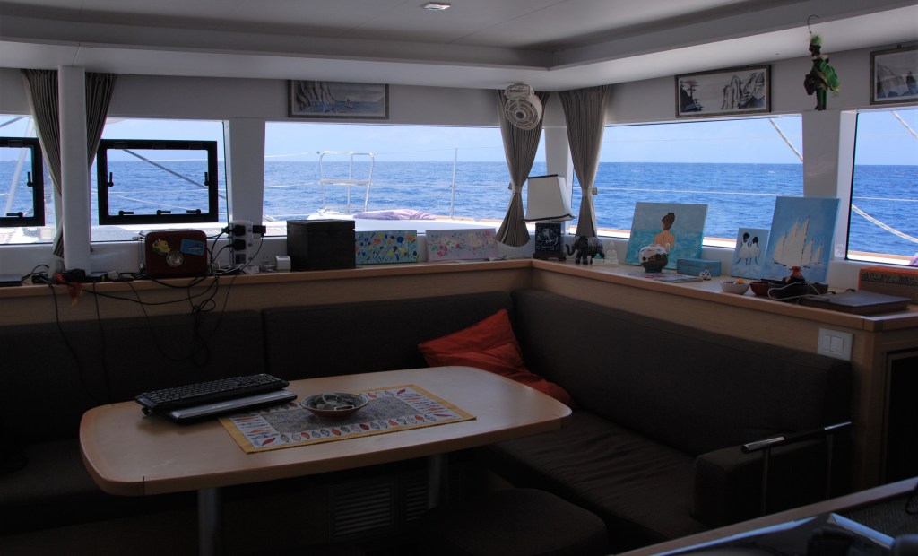 Nuestra rutina a bordo no cambió mucho ya que pudimos hacer paddeling , pesca, buceo,natación, cocinar, jugar a las cartas, trabajos en el barco , escribir estas cosas , ordenar recetas